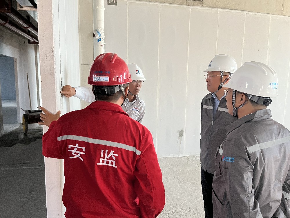 公司董事長何炯華一行走進項目施工現場檢查并指導工作