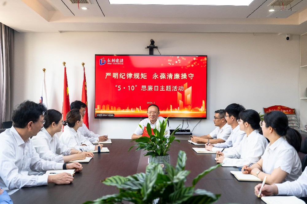 五月清風沐港口,律己倡廉正當時。為深入貫徹黨的二十大精神,全面落實中央紀委二次全會和省、市紀委三次全會部署,切實加強以黨員干部為重點的公司廉潔教育,持續凈化公司風清氣正的政治生態,5月9日下午,東利建設開展“嚴明紀律規矩,永葆清廉操守”5·10思廉日主題教育活動。公司高管、全體黨員、主管及以上管理人員參加